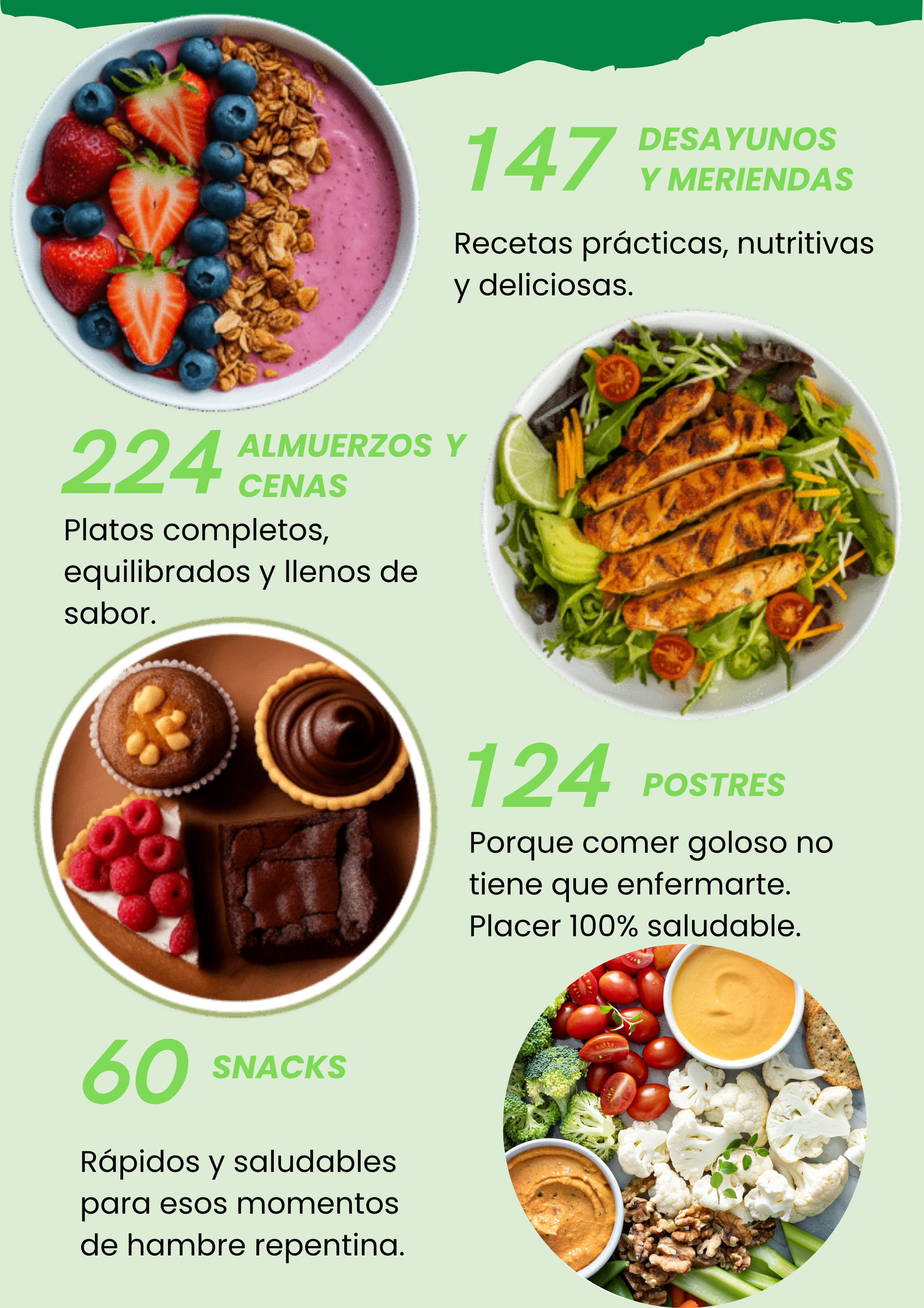 Este no es un recetario más: es una guía de transformación real. No se enfoca en contar calorías, sino en cómo sanar desde adentro, disfrutar y verte bien sin castigo ni restricciones.