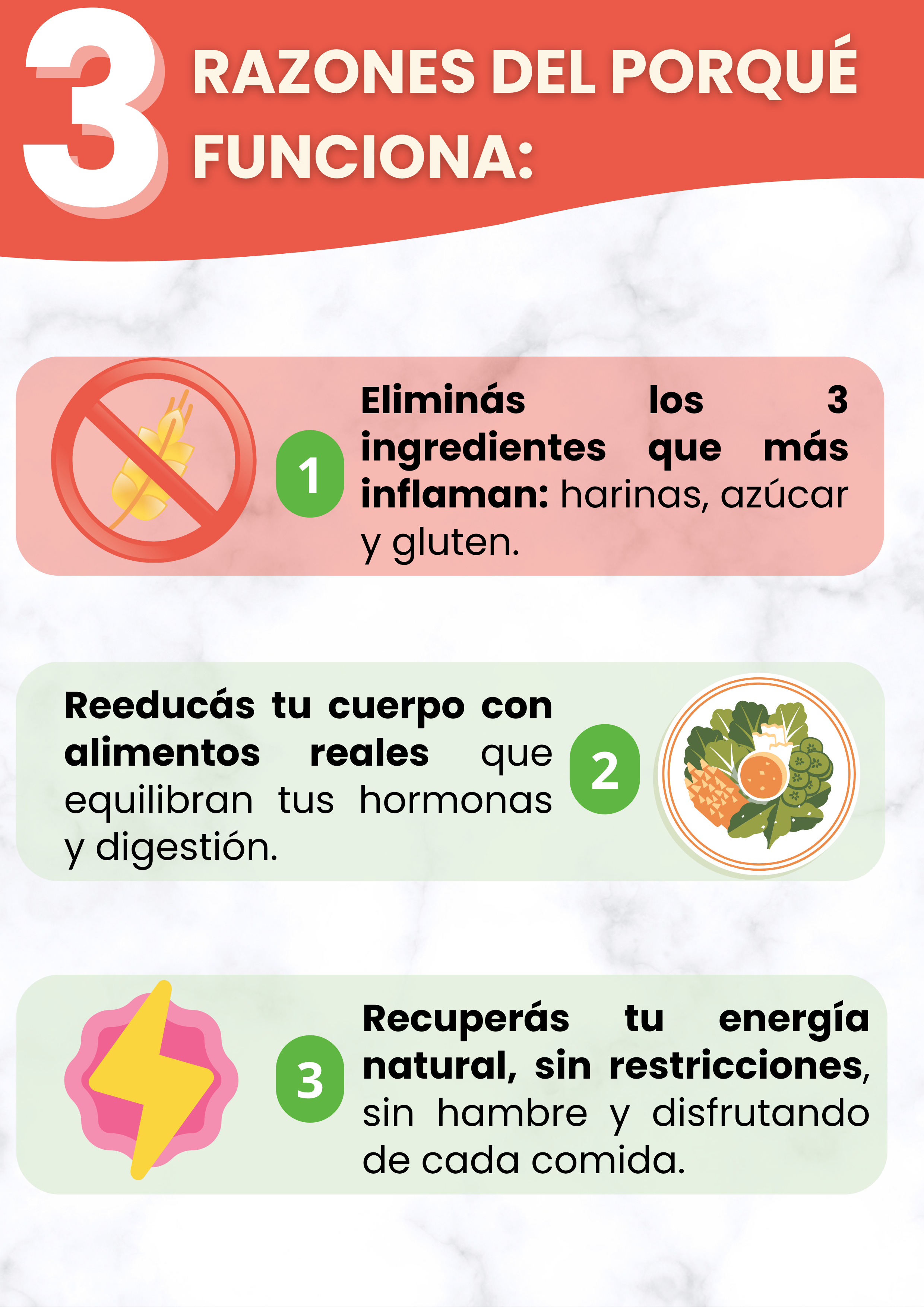 Sí. No se trata de comer menos, sino de comer diferente. Las recetas están pensadas para desinflamar, equilibrar tu cuerpo y cortar la ansiedad. En 7 días vas a notar tu abdomen más liviano, más energía y menos culpa al comer.