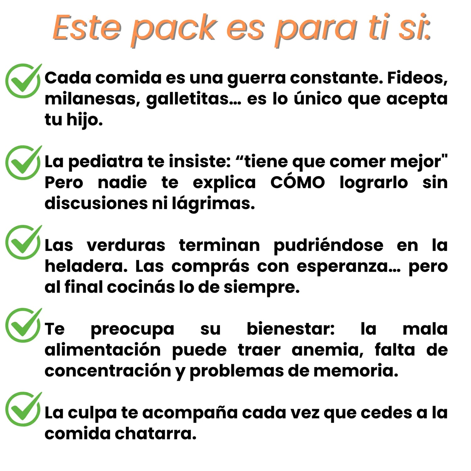 Fácil de preparar Y fácil de que tu hijo lo coma. Nuestro Planificador Semanal de Comidas "Paz en la Mesa" (Bono #2) está diseñado para optimizar tu tiempo, permitiéndote cocinar una sola comida para toda la familia. El objetivo es reducir tu esfuerzo y estrés, no aumentarlo, devolviéndote la alegría de cocinar sin la presión constante.