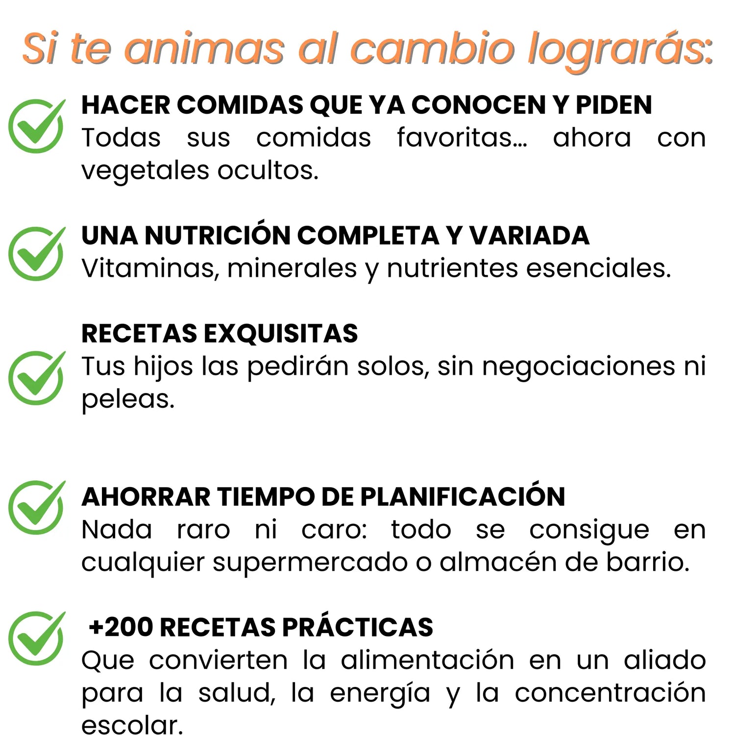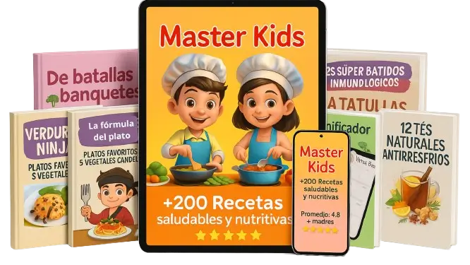 Master Kids es mucho más que un simple libro de recetas. Es un programa completo que te equipa con el conocimiento y las herramientas para entender y transformar la relación de tu hijo con la comida. Sí, incluye más de 200 recetas deliciosas y nutritivas, pero la clave está en las estrategias probadas para la aceptación, la gestión de texturas y sabores, y la creación de un ambiente positivo en la mesa. Los bonos, como "De Batallas a Banquetes" (Bono #3), te enseñan el cómo lograr que tus hijos amen las verduras, no solo a esconderlas. Es un enfoque holístico para una solución duradera.